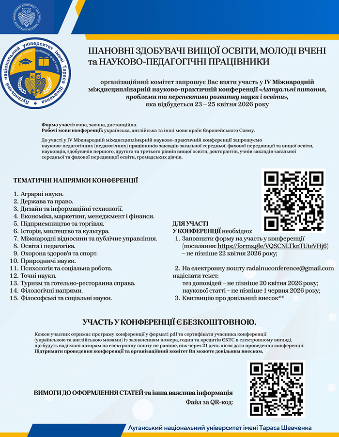IV МІЖНАРОДНА МІЖДИСЦИПЛІНАРНА НАУКОВО-ПРАКТИЧНА КОНФЕРЕНЦІЯ