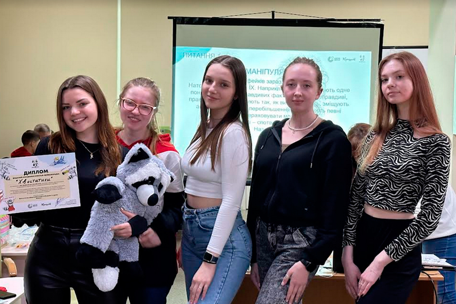 There were three teams in total: "Hvostatiki", "Mriya" and "Raccoon". All participants received a lot of positive emotions, sweet gifts, and new priceless knowledge as the most important thing. During four rounds, the team "Khvostatiki" was the leader. With its intellectual ideas, the team won the victory, and most importantly, freed our Raccoon from lying, of course, in the conditions of the game.