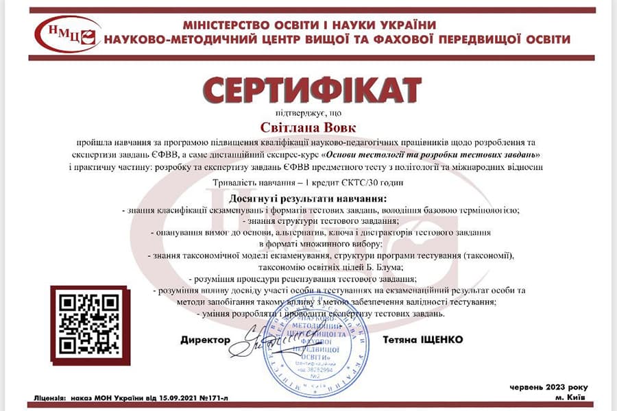 The teachers of the ER IHIRSPS took part in the program of development and examination of tasks of the single professional entrance test and received a certificate of professional development.