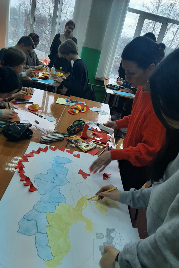 "With Ukraine in my heart! " - this is exactly how love sounds today in the hearts of all Ukrainians. Our event was held under this slogan. The winners created some presents, made their own patriotic Valentine cards, which were later handed to passers-by in the central square of the city with words of congratulations.