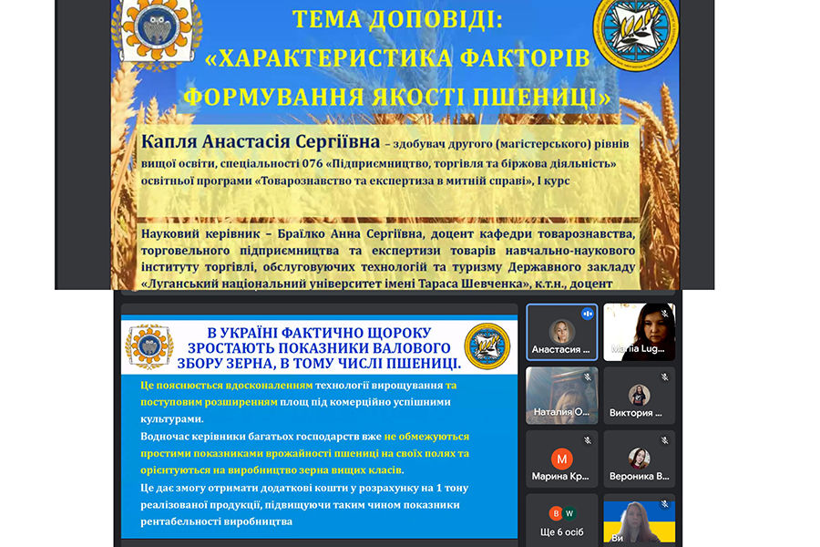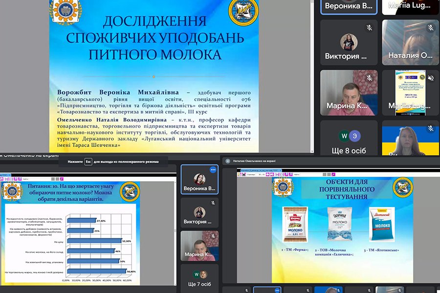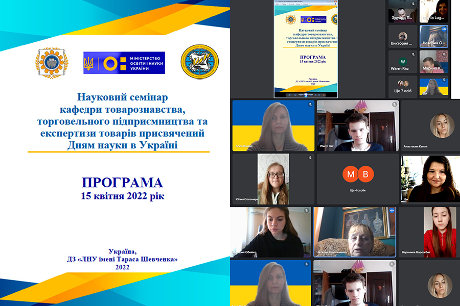 The event was held via Google Meet. Applicants for the first (bachelor's) and second (master's) levels of higher education, specialty 076 "Entrepreneurship, Trade and Exchange Activities" of the educational program "Commodity Science and Expertise in Customs", management of the Educational and Research Instituteof Commerce, Serving Technologies and Tourism and research and teaching staff of the Department of Commodity Research, Trade Entrepreneurship and Goods Expertise joined the scientific seminar.