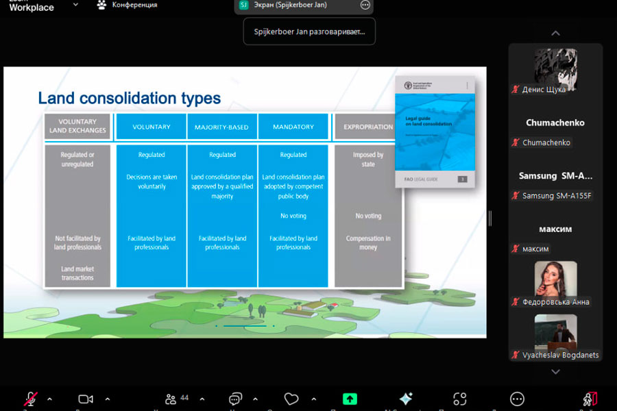 Students actively participated in the discussion, asked numerous questions about project financing mechanisms, legal aspects of land consolidation, as well as the possibility of applying innovative technologies in cadastral matters.