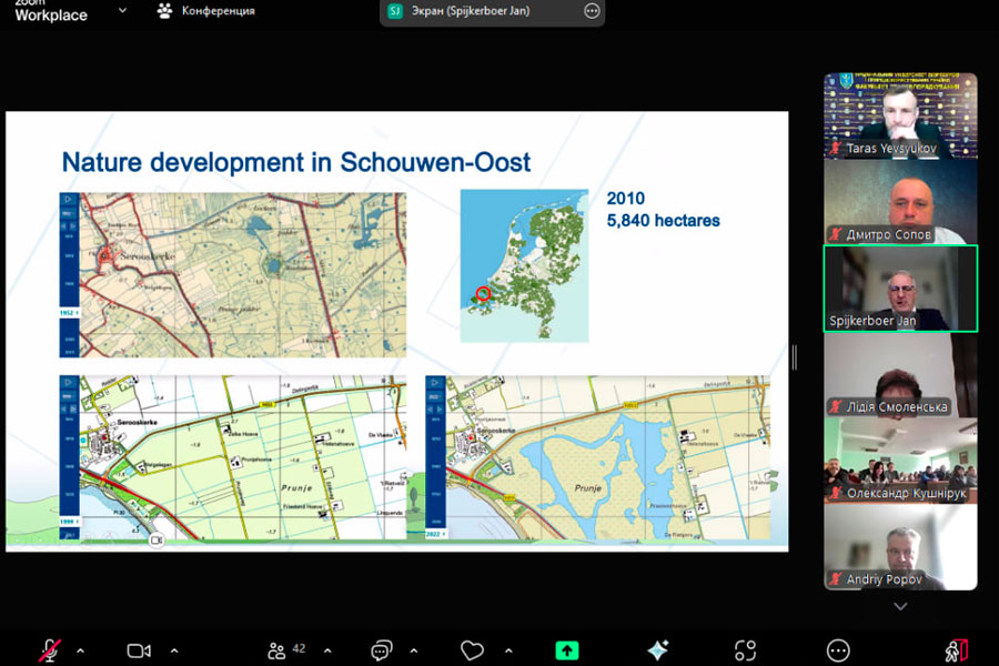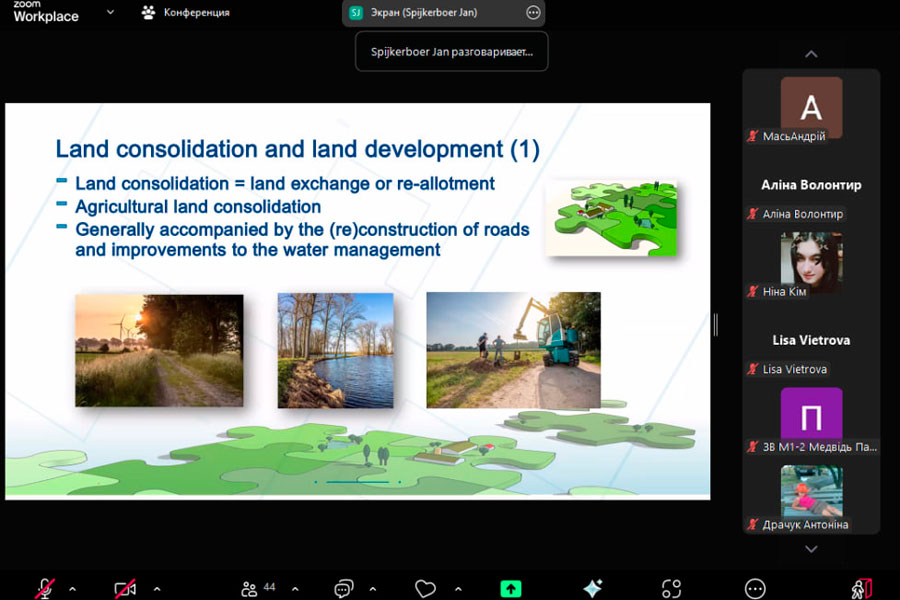 On March 13, students of the A4 “Secondary Education (Geography)” and E4 “Earth Sciences” specialties of the Department of Chemistry, Geography and Earth Sciences of the Educational and Research Institute of Natural and Agrarian Sciences had the opportunity to join a guest lecture on the topic “Experience of Land Consolidation in the Netherlands and the Province of Zeeland”. The lecture was given by Jan Spijkerboer, Senior Advisor for Territorial Development and Real Estate Management in the Kadaster Netherlands.