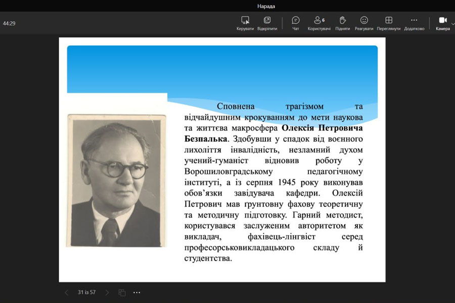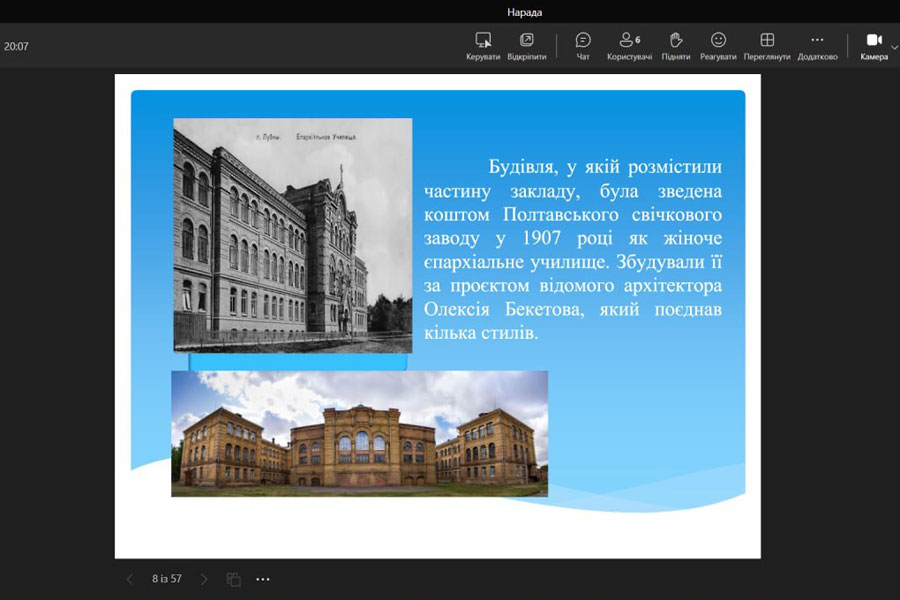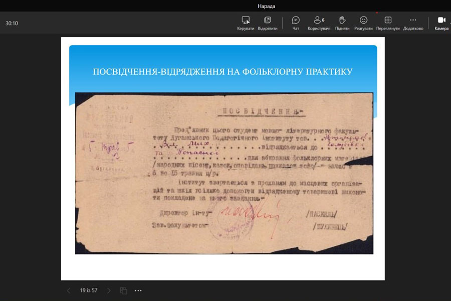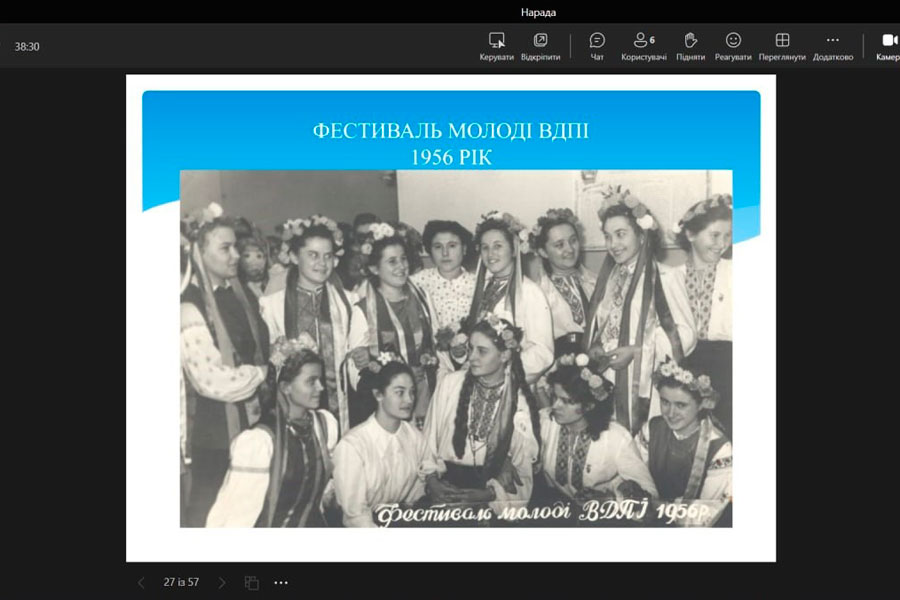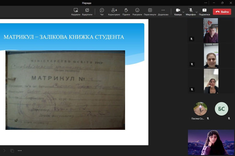 The students learned about such historical documents as the matricule (record book), trips to folklore practice, diplomas of graduates of different years, etc., and tried to understand the creative heritage of well-known Ukrainian scientists - M.F. Nakonechnyi, O.P. Bezpalko, B.A Sharpylo, O. M. Mashtabei, A. S. Zelenko, T. P. Ternovska, K. D. Glukhovtseva, A. V. Nikitina, and others.