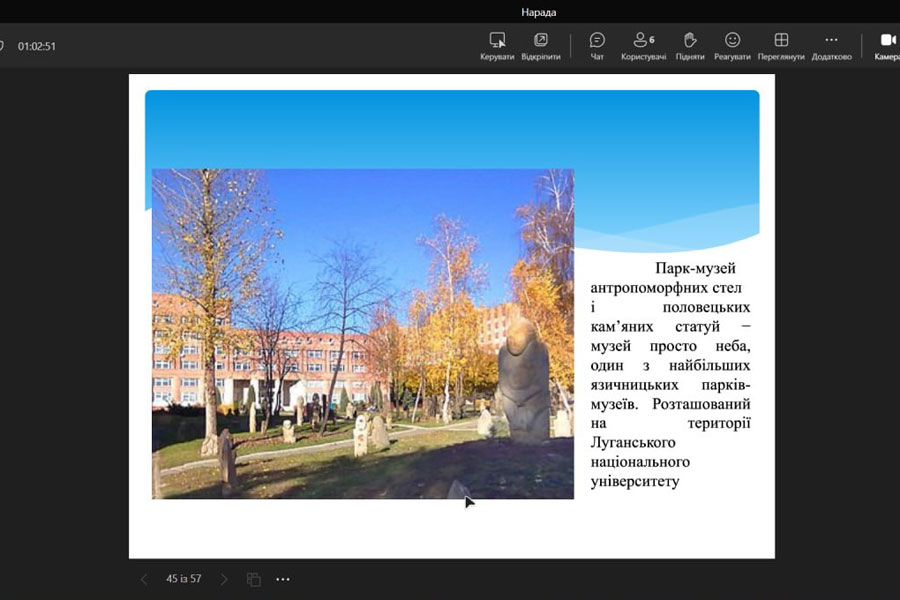 Photos with images of the university campus, the zoological museum, the museum of the history of the university, the park-museum of anthropomorphic steles and Polovtsian stone statues, etc., aroused the interest of students and lively discussion.