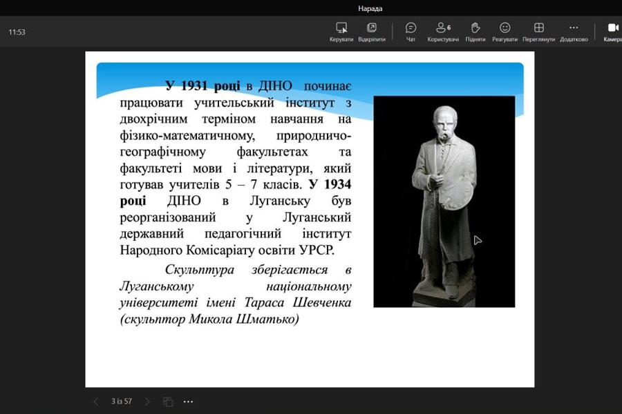 The mentors familiarized the future language teachers with the history of the foundation of the university from March 1, 1921, when the provincial higher pedagogical courses were opened, on the basis of which the first Institute of Public Education in Donbas (DINO) was later founded in Luhansk.