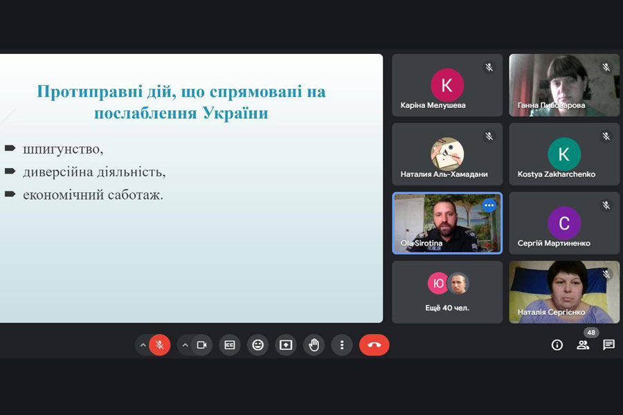 The event began with an introductory lecture, where students got acquainted with the threats facing Ukraine in the conditions of war and information aggression. Special attention was paid to the topics of treason, espionage, sabotage and economic sabotage. The teachers explained the legal consequences of such actions in accordance with the Criminal Code of Ukraine, emphasizing that participation in such actions carries a serious responsibility.