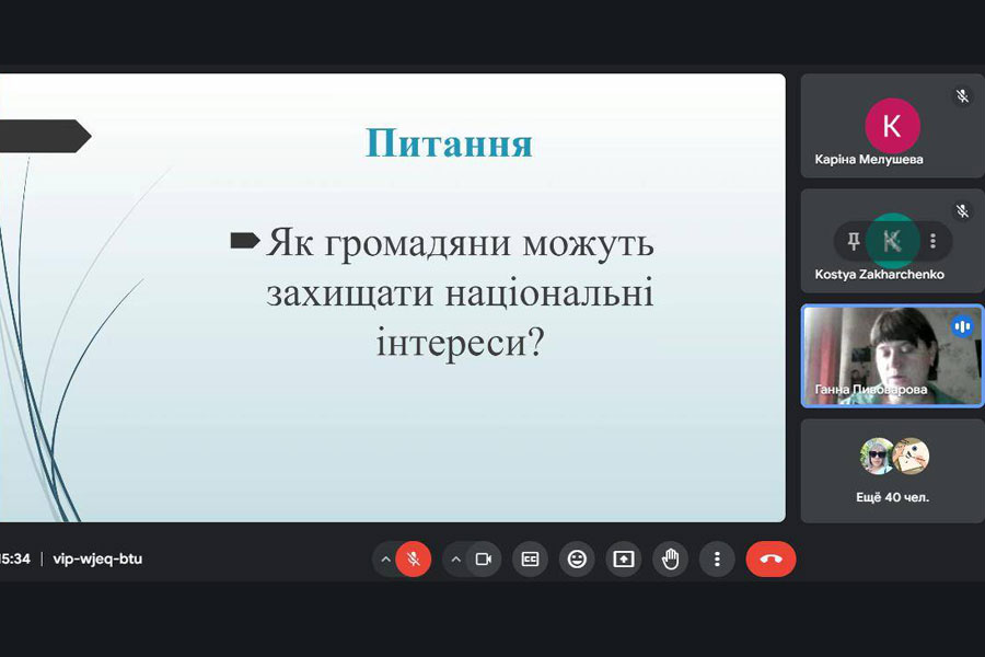 In the second half of the event, a lively discussion took place on the topic "How every citizen can protect national interests." Students discussed practical aspects of manifestations of patriotism and protection of the state in peaceful life. The issue of supporting the Armed Forces of Ukraine and combating enemy propaganda was considered.
