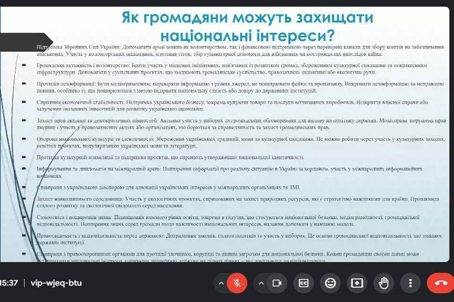 The event ended with final conclusions and a call to every student to be a responsible citizen who supports the national security and defense capability of Ukraine with his actions. Special attention was paid to the importance of supporting the Armed Forces and active citizenship.