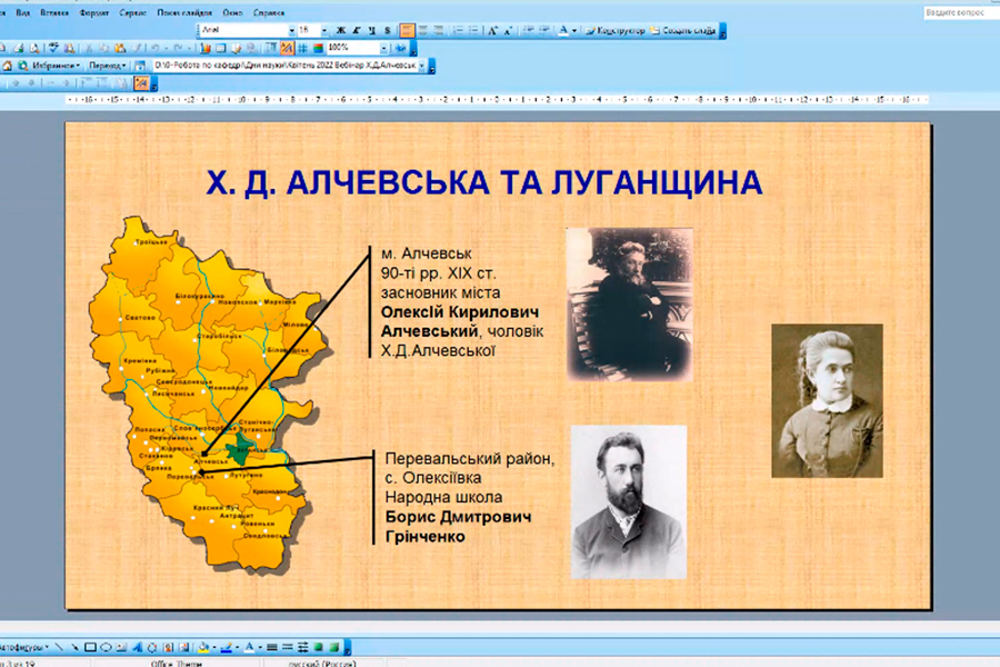 The interest in the pedagogical heritage of the famous educator and our compatriot Khrystyna Danylivna Alchevska united teachers of the ER IPP and applicants of the first (bachelor's) level pedagogical specialties and the second (master's) level of our university at the open webinar of the Pedagogy Department on April 28. The speaker was Liudmyla Butenko, Doctor of Pedagogical Sciences, Associate Professor of the Pedagogy Department.