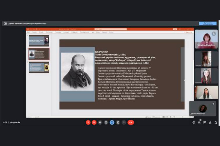 The students' reports regarding the main didactic principles of Taras Shevchenko's pedagogical system, the role of family upbringing, and Christian values in the writer's work seemed interesting. Information about Taras Shevchenko's humanistic concept of education, the role of the teacher in the formation of the young generation has become very relevant in today's conditions. The speeches of the participants of the round table were accompanied by well-chosen illustrations from the literary (prose and poetic) works of the artist, his painting work.