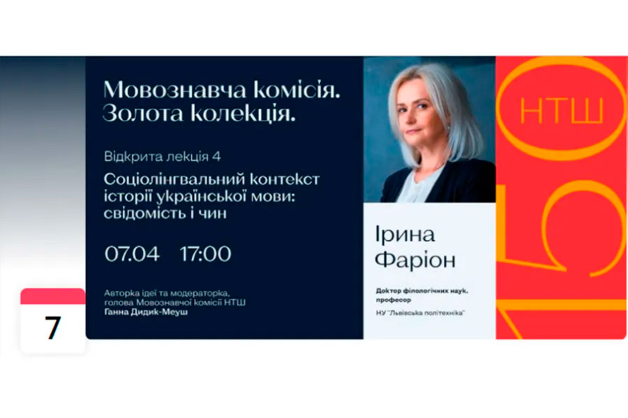 The Scholar and public figure Iryna Farion gave a lecture "Sociolingual context of the history of the Ukrainian language: consciousness and rank", developed within the project Linguistic Commission NTSh. Golden Collection", dedicated to the 150th anniversary of the Taras Shevchenko Scientific Society.