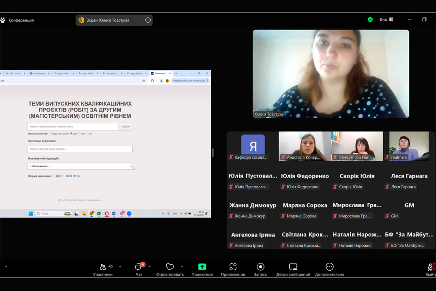 A particularly valuable experience for the students was the visit to the guest lecture of the guest professor Viktoria Stynska from Vasyl Stefanyk Prykarpattia National University, as well as participation in the round table on the topic "Health-preserving space of social workers". The practical aspects of ensuring psychophysical health in the professional sphere were discussed there.