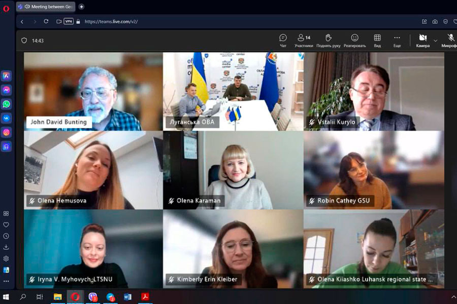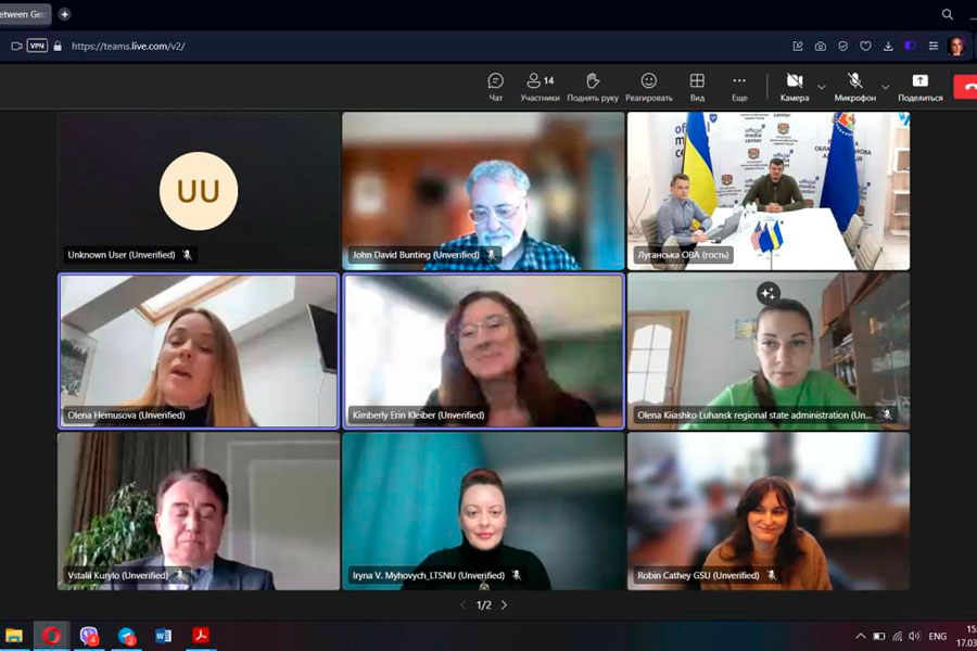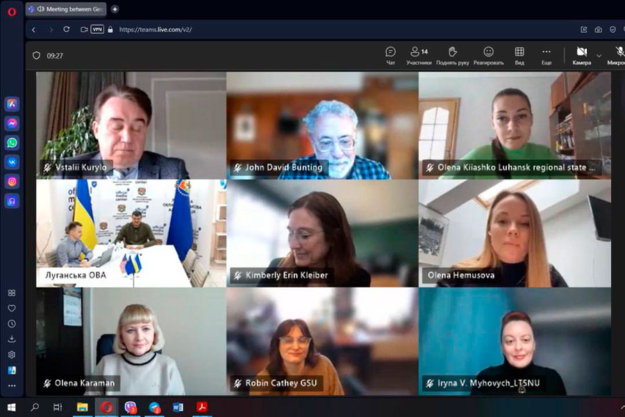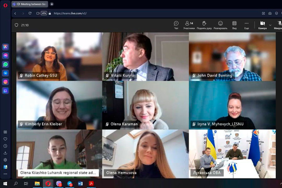 On March 17, 2024, representatives of Luhansk Taras Shevchenko National University, including the university’s rector, Doctor of Pedagogical Sciences, Professor, and Corresponding Member of the National Academy of Pedagogical Sciences of Ukraine Olena KARAMAN; the First Vice-Rector Vitalii KURYLO; and the Director of the Institute of International Education, Doctor of Pedagogical Sciences, Professor Iryna MYHOVYCH, met with a delegation from Georgia State University. Georgia State University was represented by Dr. John D. BUNTING, Principal Lecturer & Director of the Intensive English Program, Department of Applied Linguistics, Georgia State University; Ms. Robin V. CATHEY, Academic Professional, Associate Director of the Intensive English Program, Department of Applied Linguistics and ESL, Georgia State University; and other members of the delegation. The event was organized with the support and coordination of the Department of International Technical Assistance, Innovative Development, and External Relations of the Luhansk Regional State Administration. The Head of the Luhansk Regional State Administration, Artem Volodymyrovych LYSOHOR, was also present at the event.