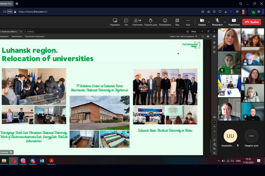 Additionally, representatives of the Luhansk Regional State Administration presented preliminary versions of materials highlighting the activities of displaced higher education institutions in the Luhansk region. The presentation included both analytical data and video materials showcasing the achievements and challenges faced by the region’s universities due to relocation.