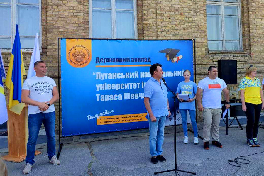 The sports event began with the greeting of Vitalii Kurylo, Chairman of the Academic Council of Luhansk Taras Shevchenko National University, Volodymyr Moroz, Head of the Primary Trade Union Organization, and Oleksandr Dubovoi, Director of the Educational and Research Institute of Physical Education and Sports.