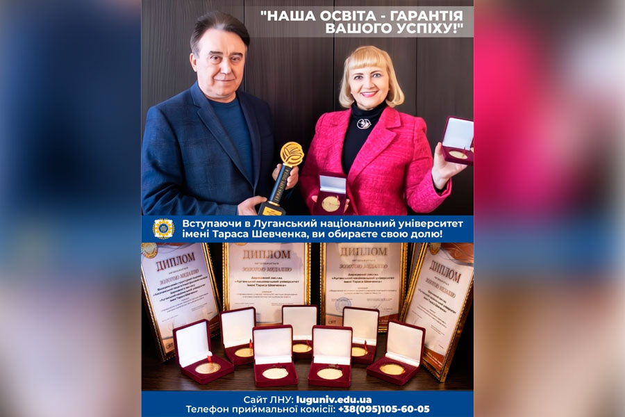 Luhansk Taras Shevchenko National University has repeatedly confirmed its high status in the field of education. In March 2024, our institution received the Grand Prix "Leader of Higher Education of Ukraine" and two gold medals in the thematic competition of scientific works, which once again confirms the high level of student training and the professionalism of teachers.