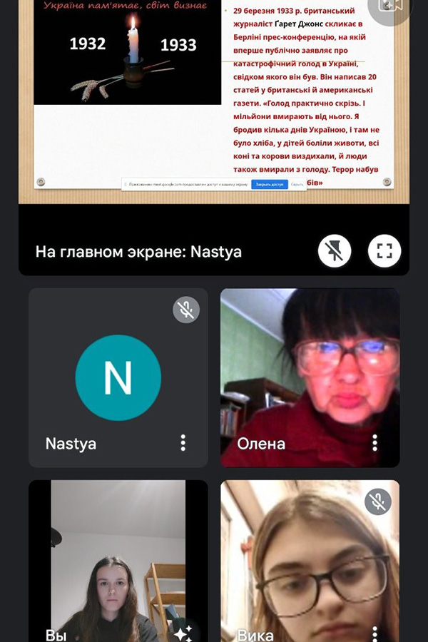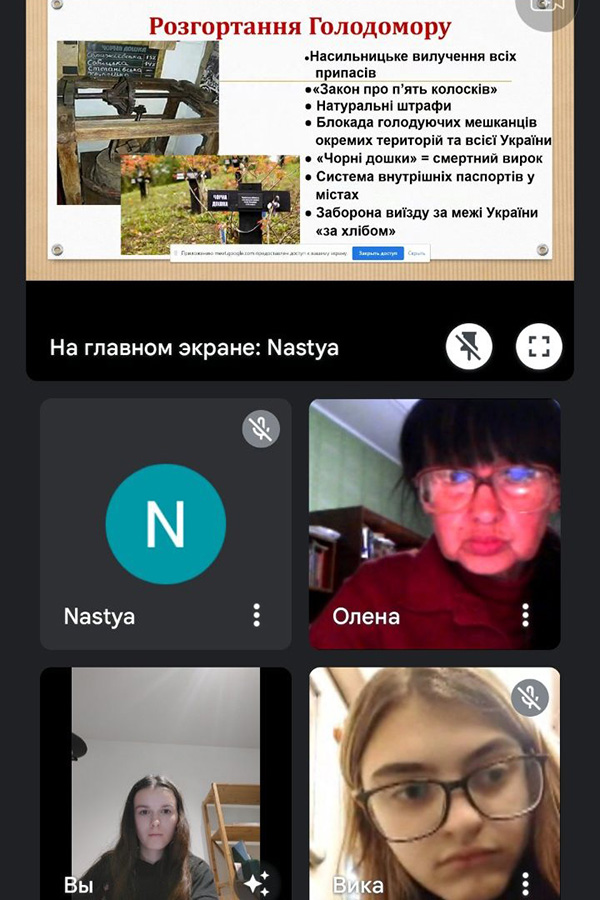 Historical documents, video and photo materials that reveal the essence of the Holodomor, its causes and consequences, and works of fiction were read at the thematic classes on history, literature, and educational classes, which testified to the cruel facts from the life of the Ukrainian people.