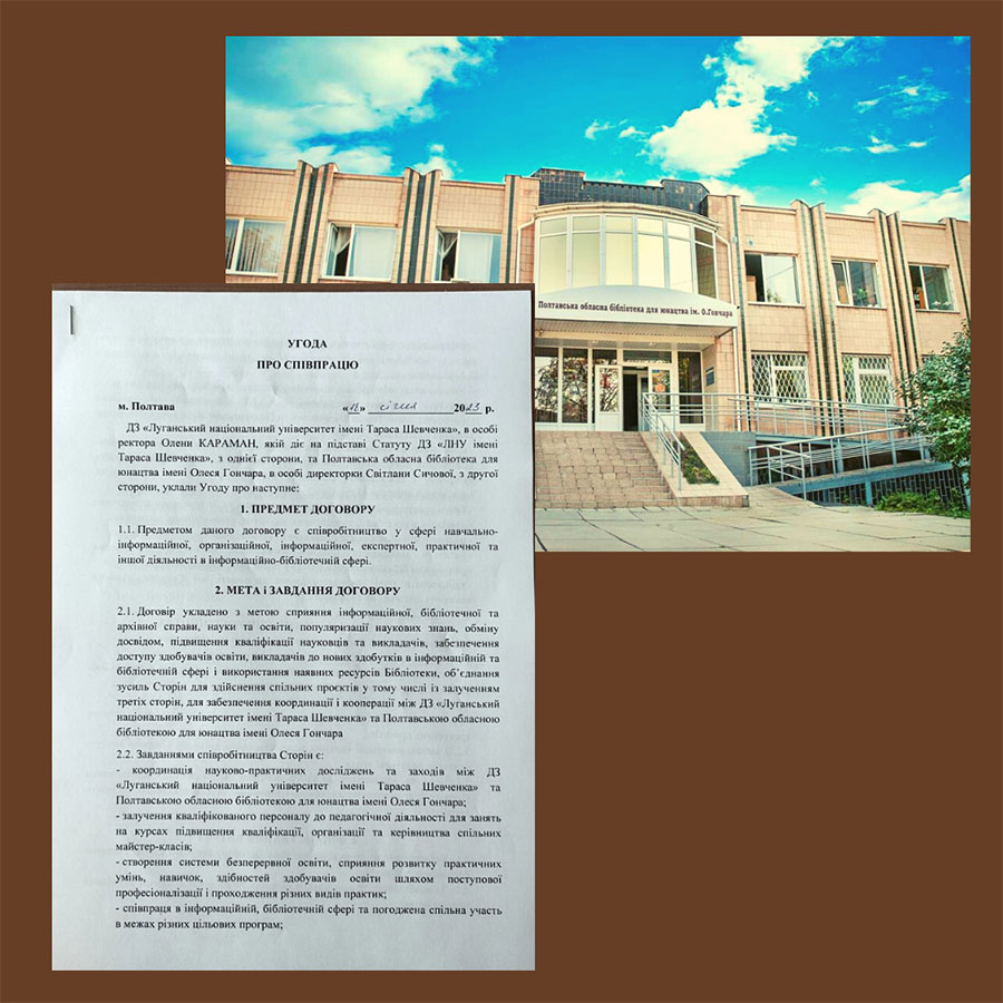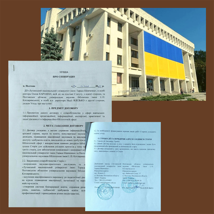 On January 18, 2023, an agreement was signed with the Oles Honchar Poltava Regional Youth Library and the Poltava Regional Universal Scientific Library named after I.P. Kotlyarevsky on cooperation in the field of educational and informational, organizational, expert, practical and other activities.