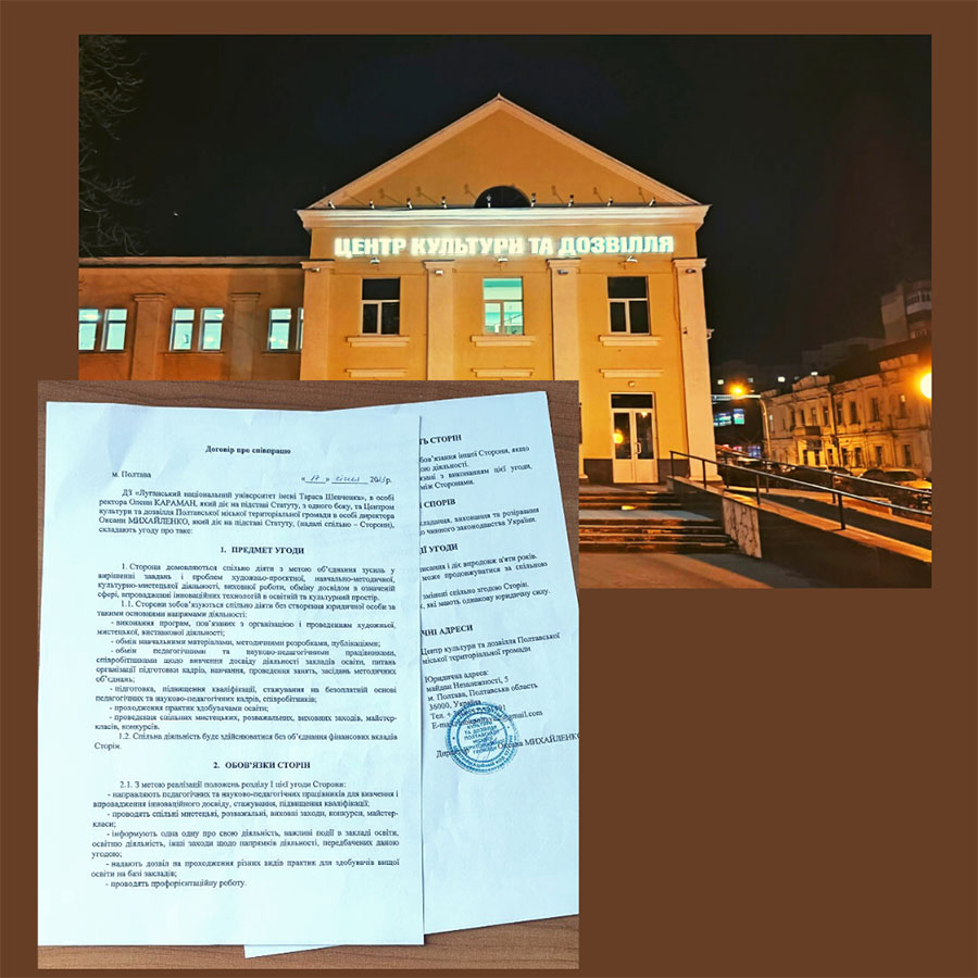 On January 16, a cooperation agreement was signed with the Poltava Art Museum (art gallery) named after Mykola Yaroshenko, and on January 19 - with the Poltava I.P. Kotlyarevsky Literary and Memorial Museum for the involvement of scientific and pedagogical workers, employees, students in joint artistic project, exhibition, cultural and artistic activities.