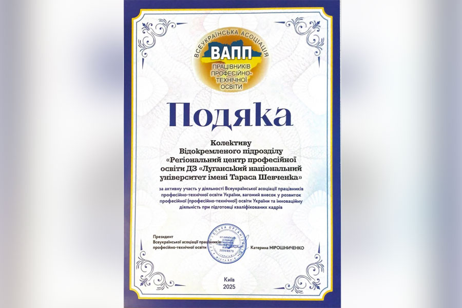 The Regional Center for Professional Education of Luhansk Taras Shevchenko National University is an educational institution that was included in the anniversary collection “PROFESSIONAL EDUCATION IN UKRAINE: WE STOOD, WE WILL WIN, WE WILL REBUILD” — a symbol of invincibility and progress. Being a part of this history is a great honor and pride!