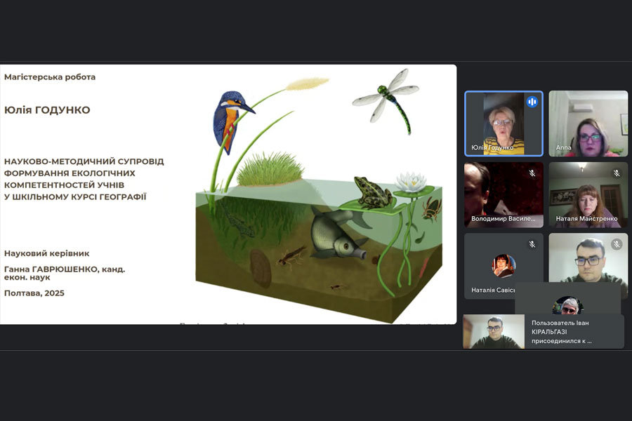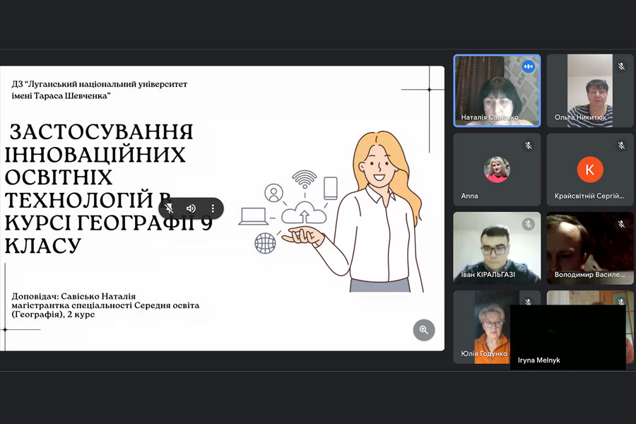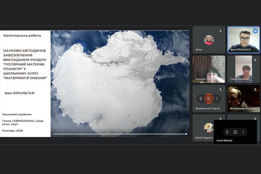 All works were previously successfully checked for uniqueness and academic integrity. Master's students, using a modern format and design of presentations, presented the results of their research. The issues of qualification works covered a wide range of scientific problems of the theory and practice of geography teaching in secondary education institutions - from the formation of students' competencies (ecological, creative, and cartographic) to the introduction of innovative and multimedia technologies and scientific and methodological support for teaching individual sections of the geography program.