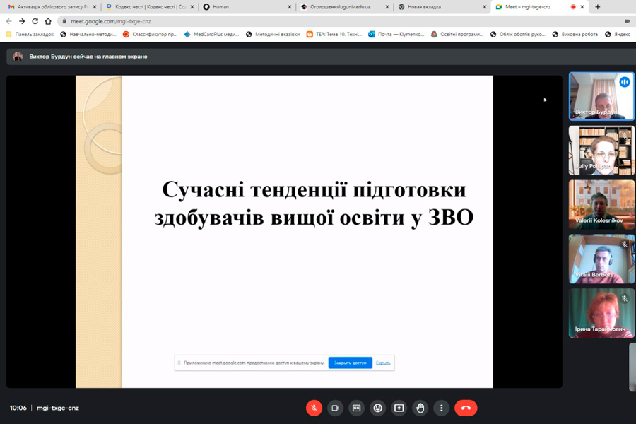 The seminar was held in the format of a video meeting. The seminar was moderated by Viktor Burdun, Head of the Department of Production Technologies and Professional Education.