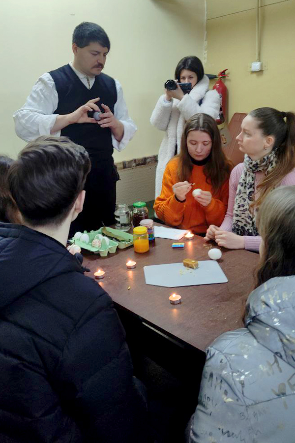 On March 7, Candidate of Architecture, Associate Professor of the Design Department of the Educational and Research Institute of Culture and Arts, Nazar Bozhinskyi, held a master class on Easter eggs painting at the Poltava Regional Universal Library named after I.P. Kotliarevskyi.
