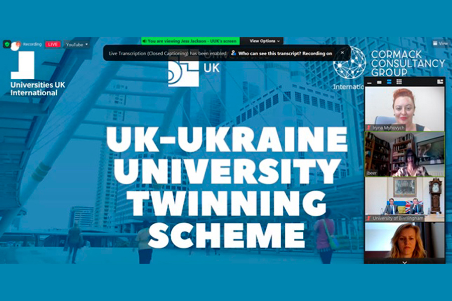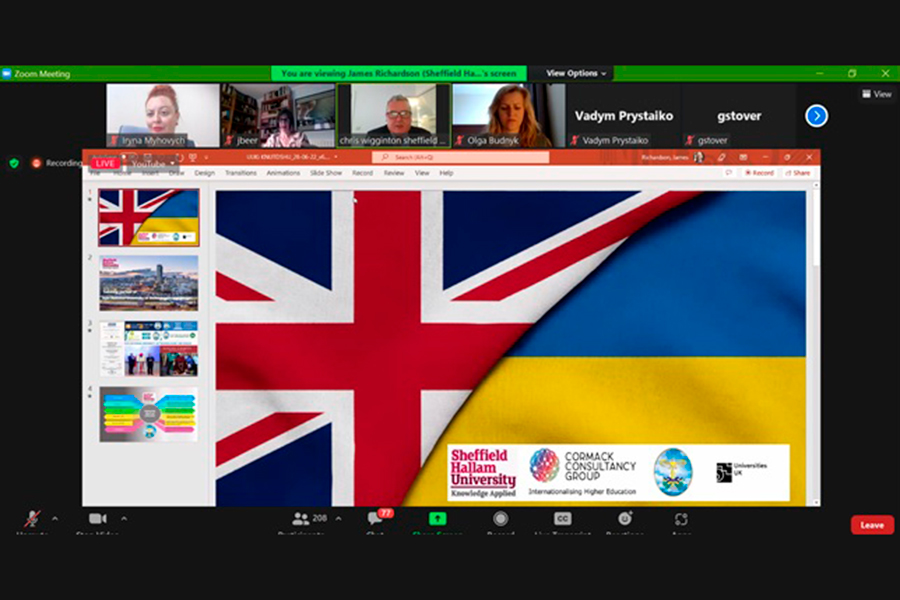 On June 28, 2022, the Head of the International Relations Department, Iryna Myhovych, took part in an online conference within the project, during which partnership agreements were signed between the participants of the first cohort, as well as information sessions were held on the peculiarities of study and research work in academic institutions of Ukraine and of Great Britain. A landmark event in the history of higher education in Ukraine was held with the participation of rectors of UK universities, the Ambassador of Ukraine to the UK, Mr. Vadym Prystaik, the Ambassador of Great Britain to Ukraine, Ms. Melinda Simmons, and the authorized representative of the President of Ukraine for the support of education, science, and sports, Ms. Olha Budnyk.