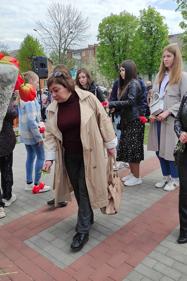 Thus, they visited the memorial in the military town together with the Lubny city public organization of the disabled "Veterans of Chornobyl". The head of the organization, Larisa Pogrebniak, thanked those present for participating in the event and briefly told when and to whom this sign was installed. Those present laid flowers and honored the victims with a moment of silence.