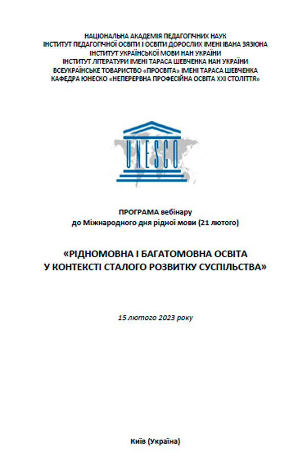Venue of the webinar: online on the basis of the Institute of Pedagogical Education and Adult Education named after Ivan Ziaziun of the National Academy of Sciences of Ukraine (Kyiv, 9 M. Berlinskyi St.).