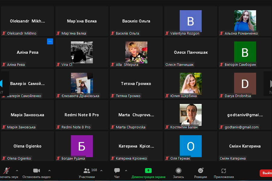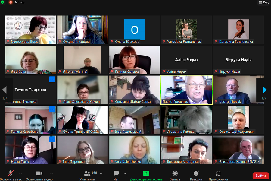 The participants of the webinar were 168 people: public figures, scientists, students, master's students, postgraduate students, doctoral students, teachers of institutions of professional pre-higher and higher education, teachers and methodologists of institutes of postgraduate pedagogical education, teachers of general education and preschool institutions of Ukraine.