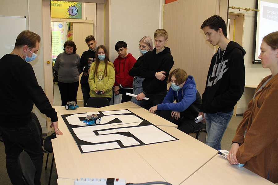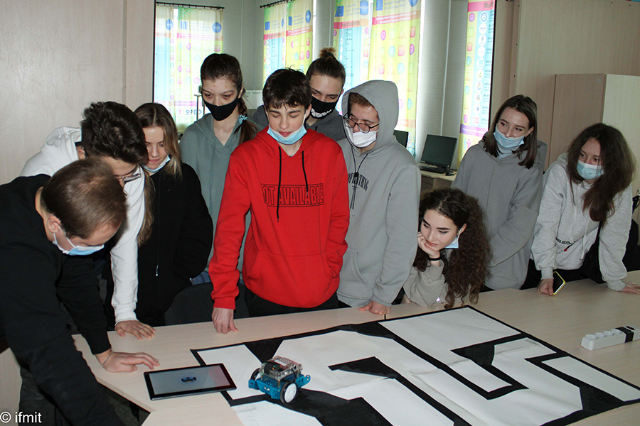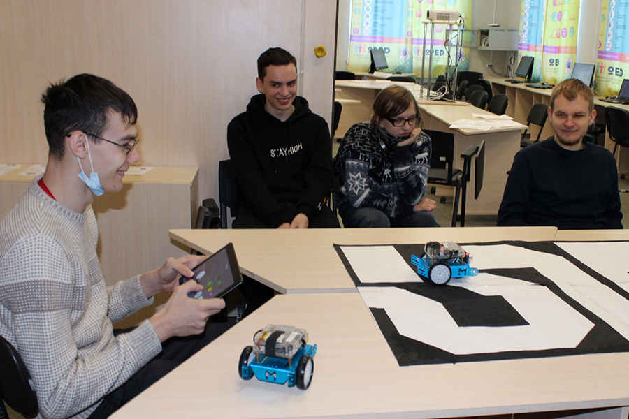 The first group went to get acquainted with the works. The students saw the functionality of robots, and how they can be controlled in real time or using a pre-created program. Schoolchildren had the opportunity to test themselves as a researcher and developer on their own.