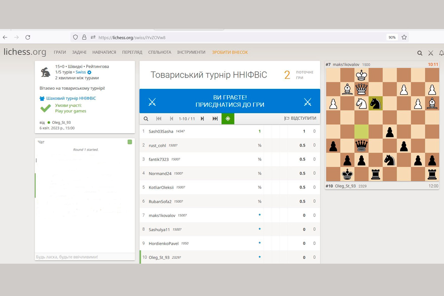 The undisputed leader of the tournament was Oleksii Kotliar, master of sports of Ukraine in chess, fourth-year student majoring in Physical Culture and Sports. Despite this, the fight was fierce and fought on every board.