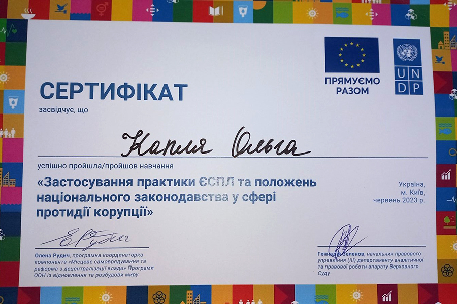On June 06-07, 2023, the UN Development Program in Ukraine within the framework of the UN Peacebuilding and Reconstruction Program, in order to strengthen the potential of higher education institutions in the field of anti-corruption, organized and conducted the training "Application of the practice of the ECHR and the provisions of national legislation in the field of anti-corruption".