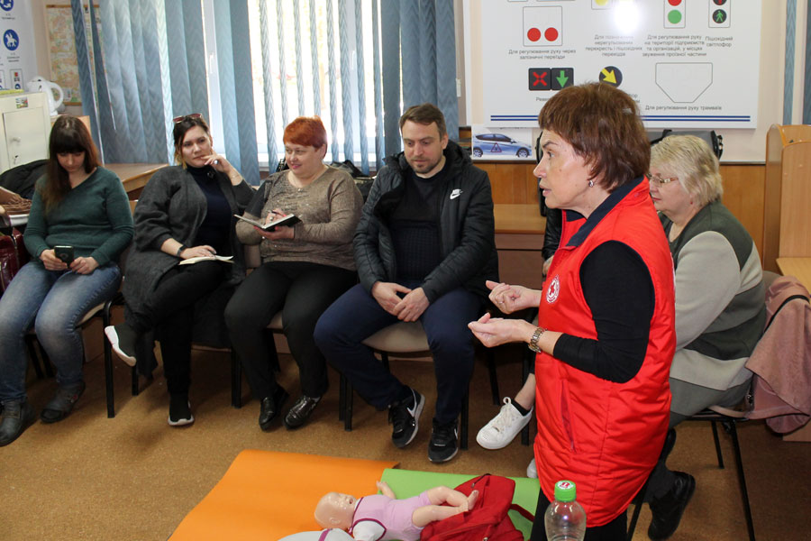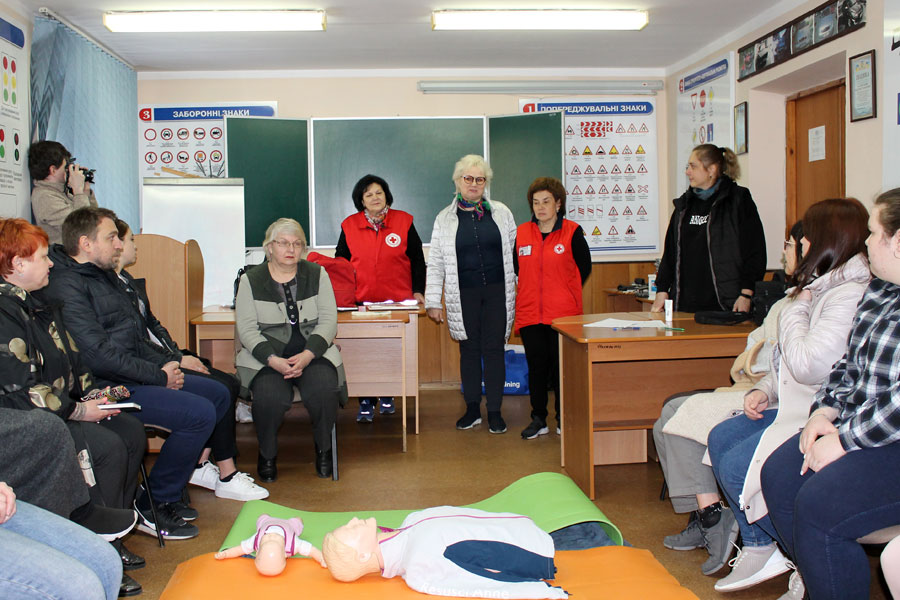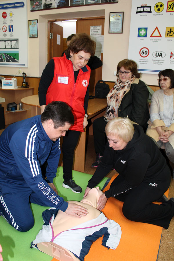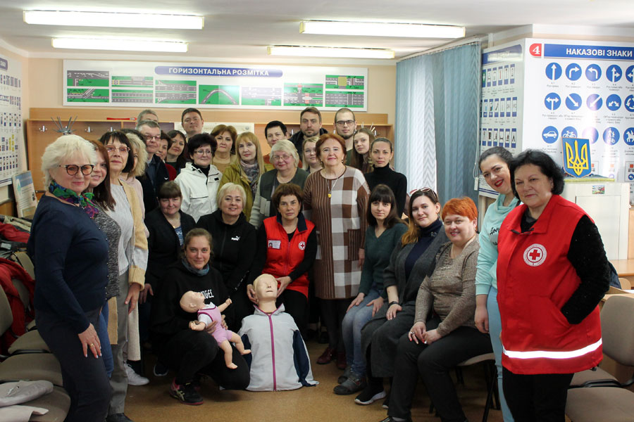 The theoretical course from the Red Cross, which lasted about 6 hours, was successfully combined with practical training on special mannequins, on which everyone could train.