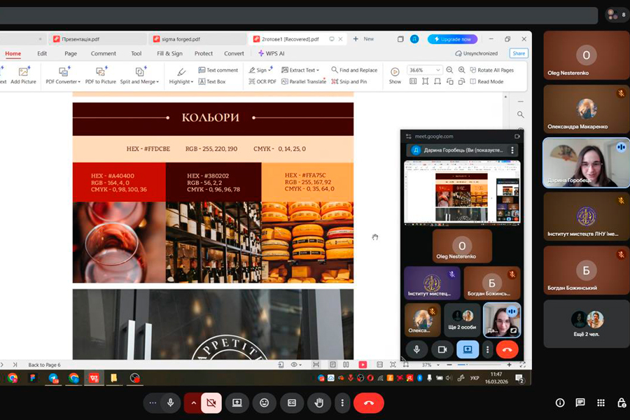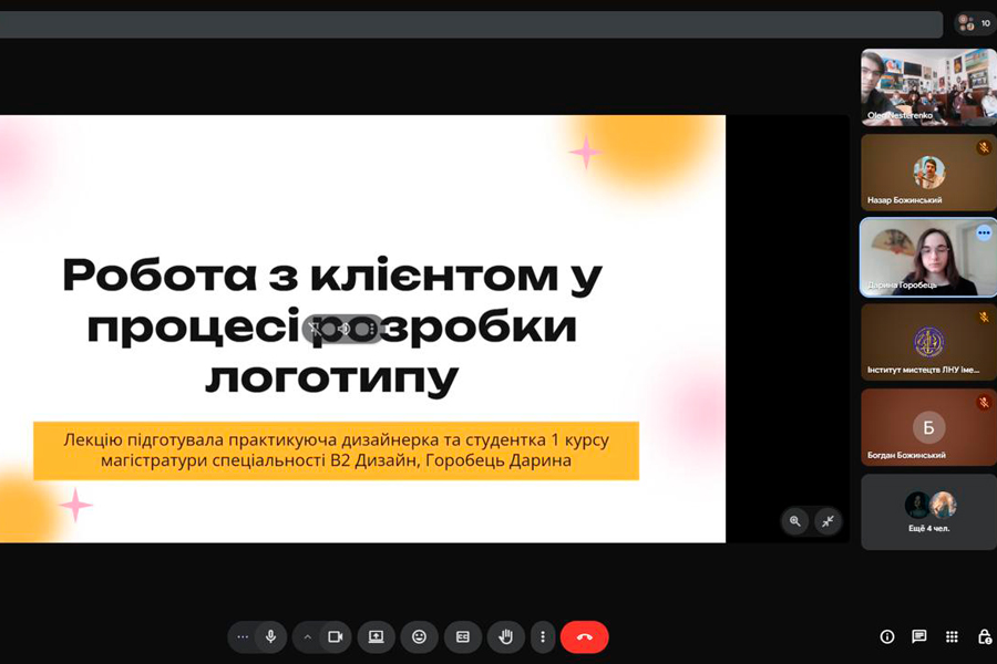 The next event in the series was an online lecture by designer Daryna Horobets on the topic: “Working with a client in the process of developing a logo”. During the meeting, the specifics of communication with the customer at different stages of creating an identity were considered. The lecturer shared practical advice on effective interaction with clients, outlined strategies for finding customers in modern conditions and presented relevant platforms for freelance work. Particular attention was paid to the formation of professional communication as a key factor in successful design activities.