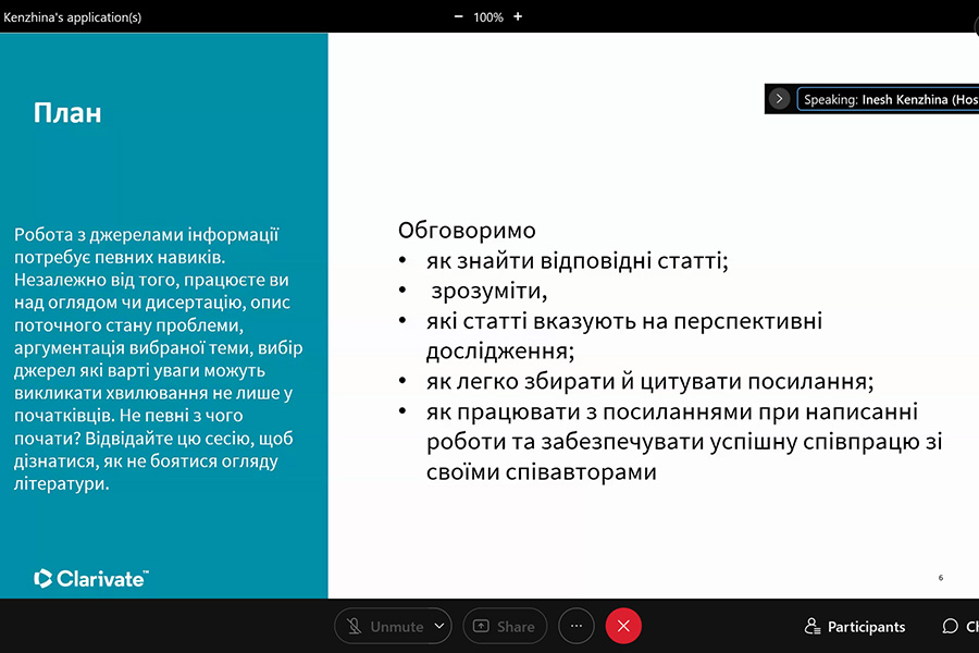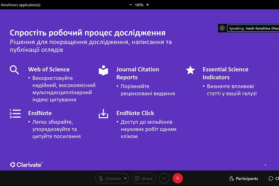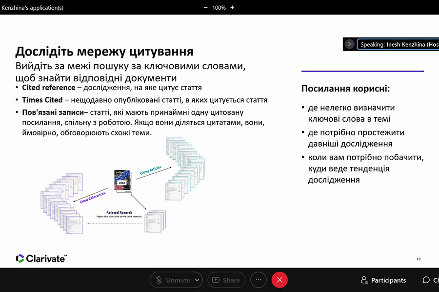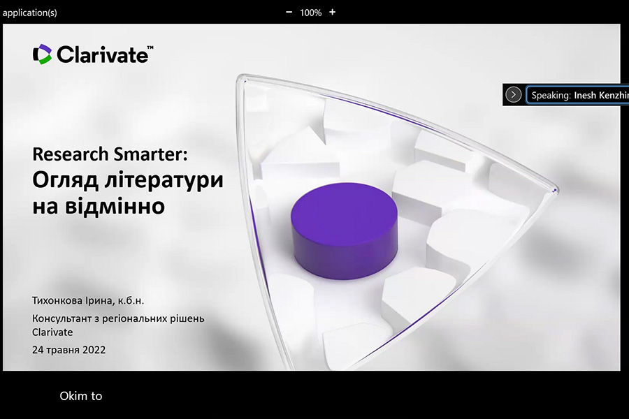 The webinar was conducted by Iryna Tykhonkova, Clarivate Analytics Regional Solutions Consultant (Head Office: London, UK).
