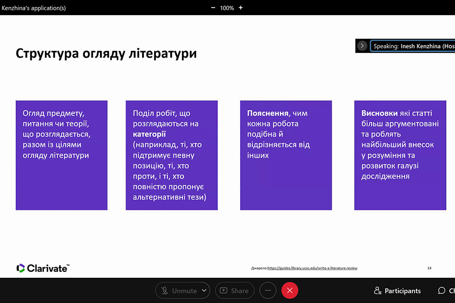 During the event from the series "Research Smarter" participants improved their skills in working with sources of information that are necessary to describe the current state of scientific problems, argumentation of the chosen scientific topic, the choice of relevant sources. They found out: the algorithm for finding the necessary scientific publications; literature review structure; benefits of systematic review; articles that point to promising research; features of simplification of systematization and citation of references; work with links when writing scientific papers and ensure successful collaboration with co-authors; simplification and acceleration of the research workflow.