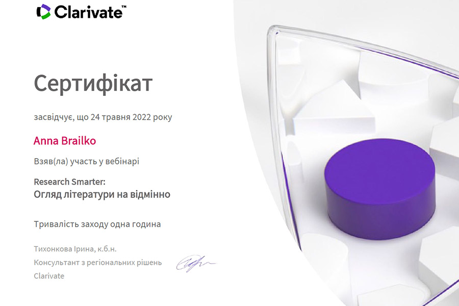 As a result of the webinar, participants received certificates from Clarivate, which is the owner and manufacturer of powerful resources and tools that help scientists conduct, analyze, present research worldwide.