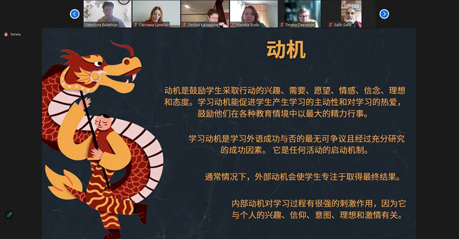 Participation in the webinar "Ways to improve the teaching of the Chinese language" allowed the participants to familiarize themselves with the latest trends in the methodology of teaching the Chinese language, provided an opportunity to learn about new approaches and resources that can be used in the educational process.