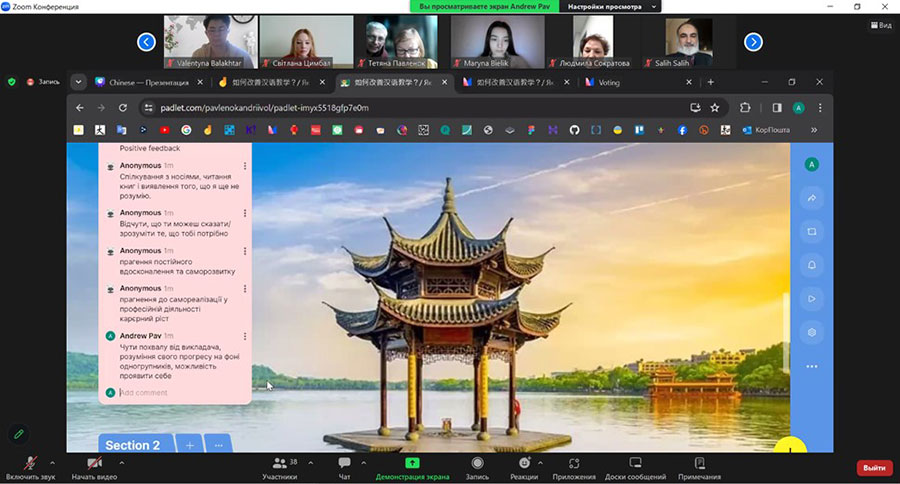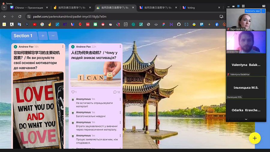 Perepadya D., Malakhova Y. and Belik M. participated in the webinar "WAYS TO IMPROVE THE TEACHING OF CHINESE» conducted by Andriy Pavlenok, assistant professor of the Department of Oriental Studies named after Professor Yaroslav Dashkevich and a graduate student of the Central University of Nationalities (Beijing) in order to gain new knowledge, skills and tools that contribute to improving the effectiveness of teaching and communication with students in modern conditions.