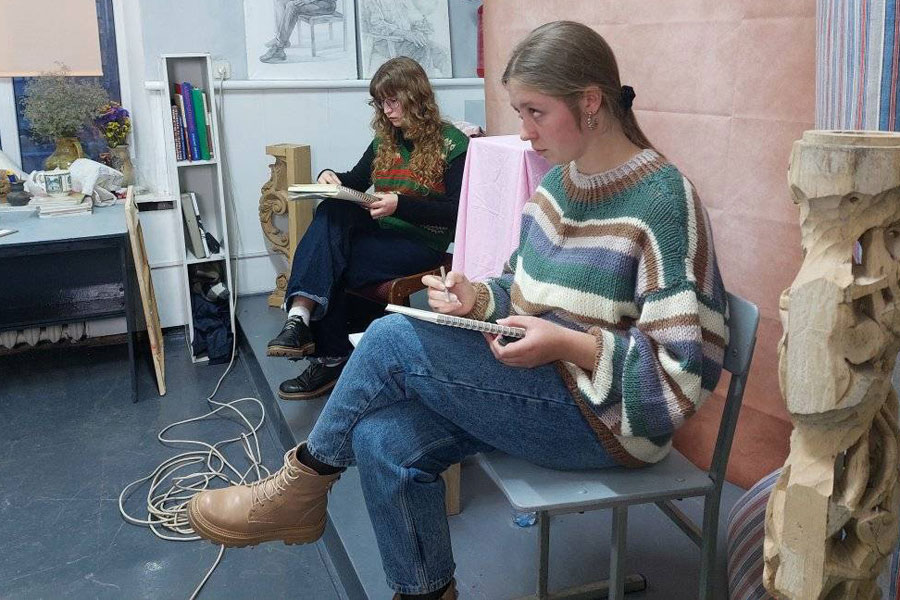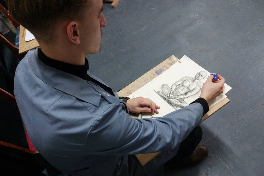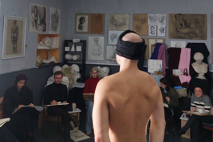 For three hours, third-year students and first- and second-year master's students worked on a series of sketches of the naked male figure from different angles.