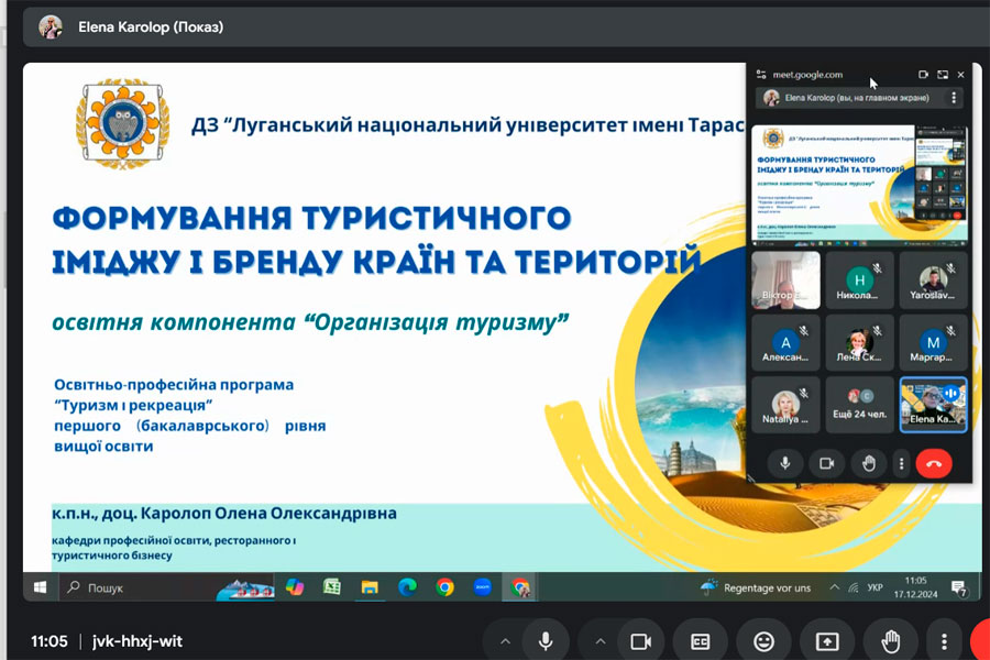 On December 17, 2024, an open lecture by Olena Karolop, Candidate of Pedagogical Sciences, Associate Professor of the Department of Professional Education, Restaurant and Tourism Business, was held. The lecture was held as part of the mandatory component “Organization of Tourism” for 2nd year bachelor's students, the educational and professional program “Tourism and Recreation”.