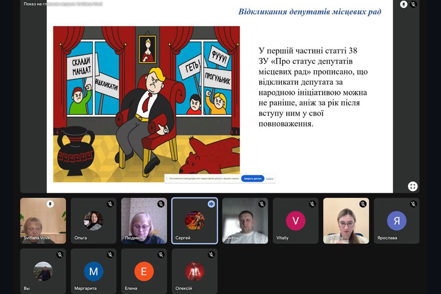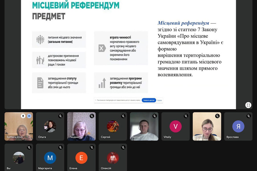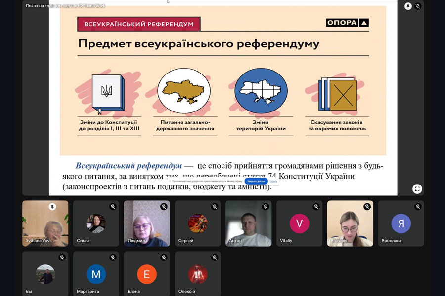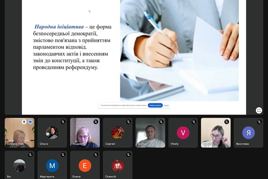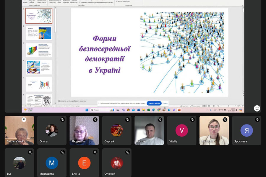 The lecturer analyzed in detail various forms of direct participation of citizens in the political process, focusing on their application and effectiveness in the context of Ukrainian democracy. The participants of the lecture had the opportunity to better understand the principles of democracy and its implementation in modern Ukrainian society.