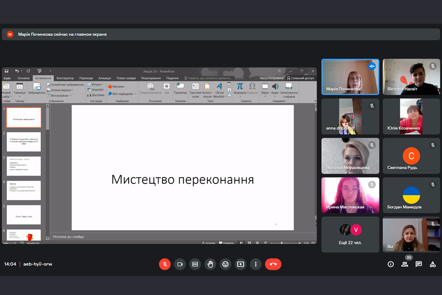 The topic "Art of Persuasion" is presented within the scope of the discipline "Oral and Written Communication and Academic Rhetoric" for the first-year bachelor's students of the educational programs of all specialties of the Educational and Research Institute of Pedagogy and Psychology.