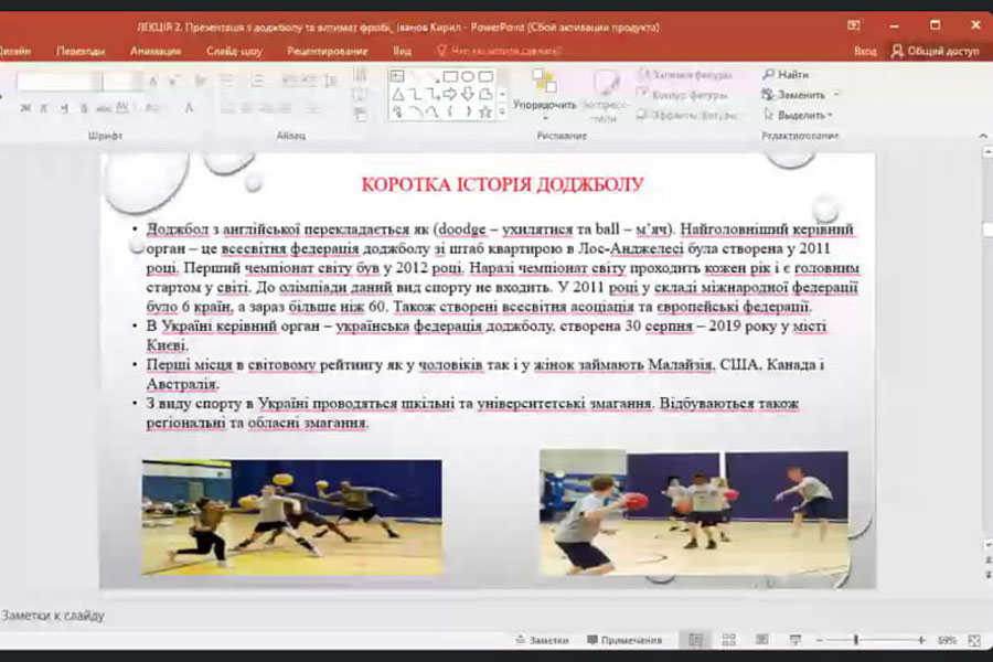 The lecturer was a 2nd year master's student majoring in 014.11 Secondary Education (Physical Culture) Kyrylo Ivanov (scientific adviser: Ph.D., associate professor, head of the Department of Theory and Methods of Physical Education Olena Otravenko).