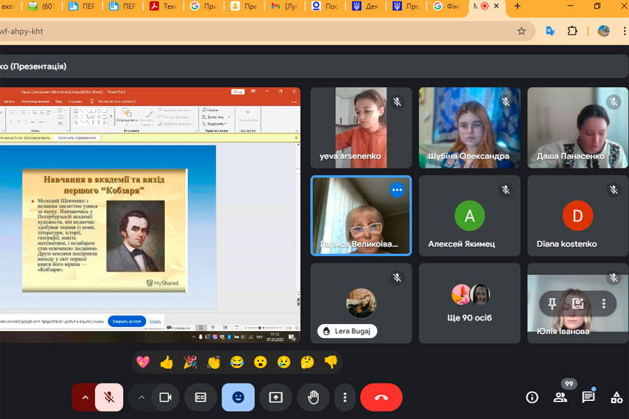 On March 8, 2025, students, teachers and employees of the College, together with the Starobilsk Professional College of LTSNU, attended an online event dedicated to the history of the life and work of T. Shevchenko, organized and conducted by the teacher of Ukrainian language and literature of the Starobilsk College, L. Velikoivanenko.