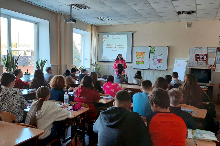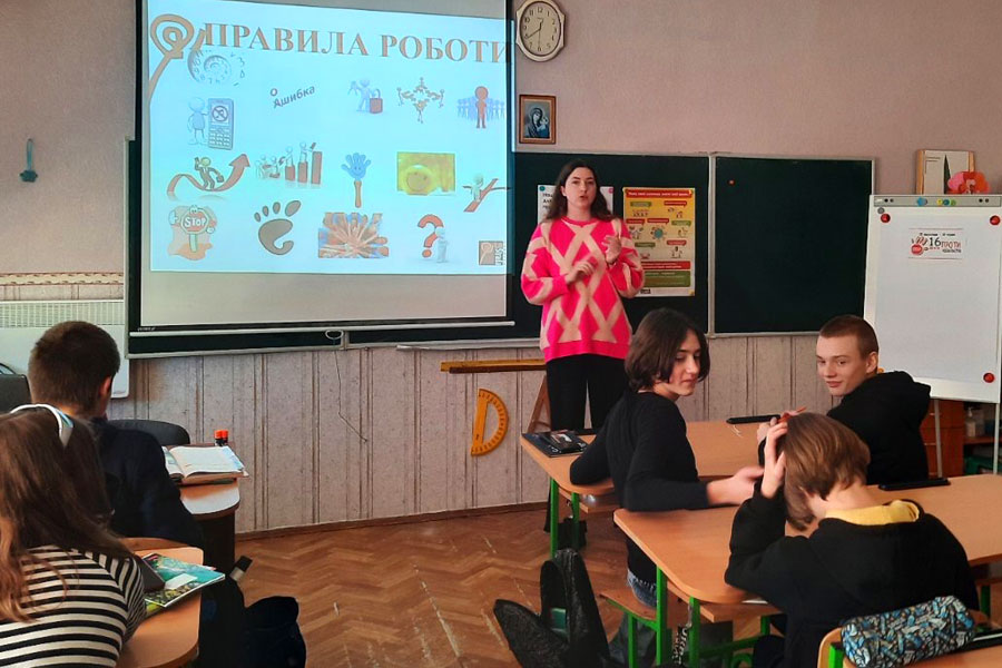 On December 1, 2023, within the framework of the All-Ukrainian action "16 Days Against Violence", a bachelor's student majoring in 231 "Social work", the educational program "Social Work. Social Pedagogy. Practical Psychology" of the Educational and Research Institute of Pedagogy and Psychology Alona Kuznetsova, who is a trainer of the Youth Coaching Network of the NGO La-Strada Ukraine, held a training on the topic: "Prevention and Response to Cases of Domestic Violence Against Children During the War" for 8th grade students of the Nazar Makarenko Lyceum No. 6 .