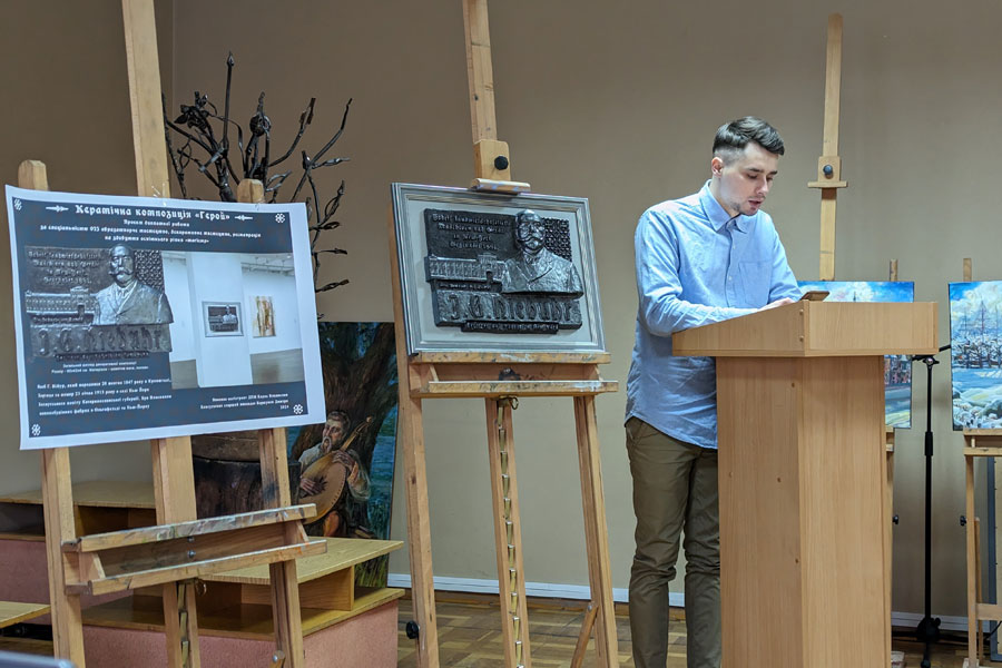 Vladyslav Kyrpa's ceramic plaque entitled "Hero", dedicated to the life and work of the German Jacob Niebuhr, who, according to one version, was the founder of the Ukrainian city of New York, and Natalia Kon's symbolic work - "Arkan" - a dance to victory, attracted the attention of all present.